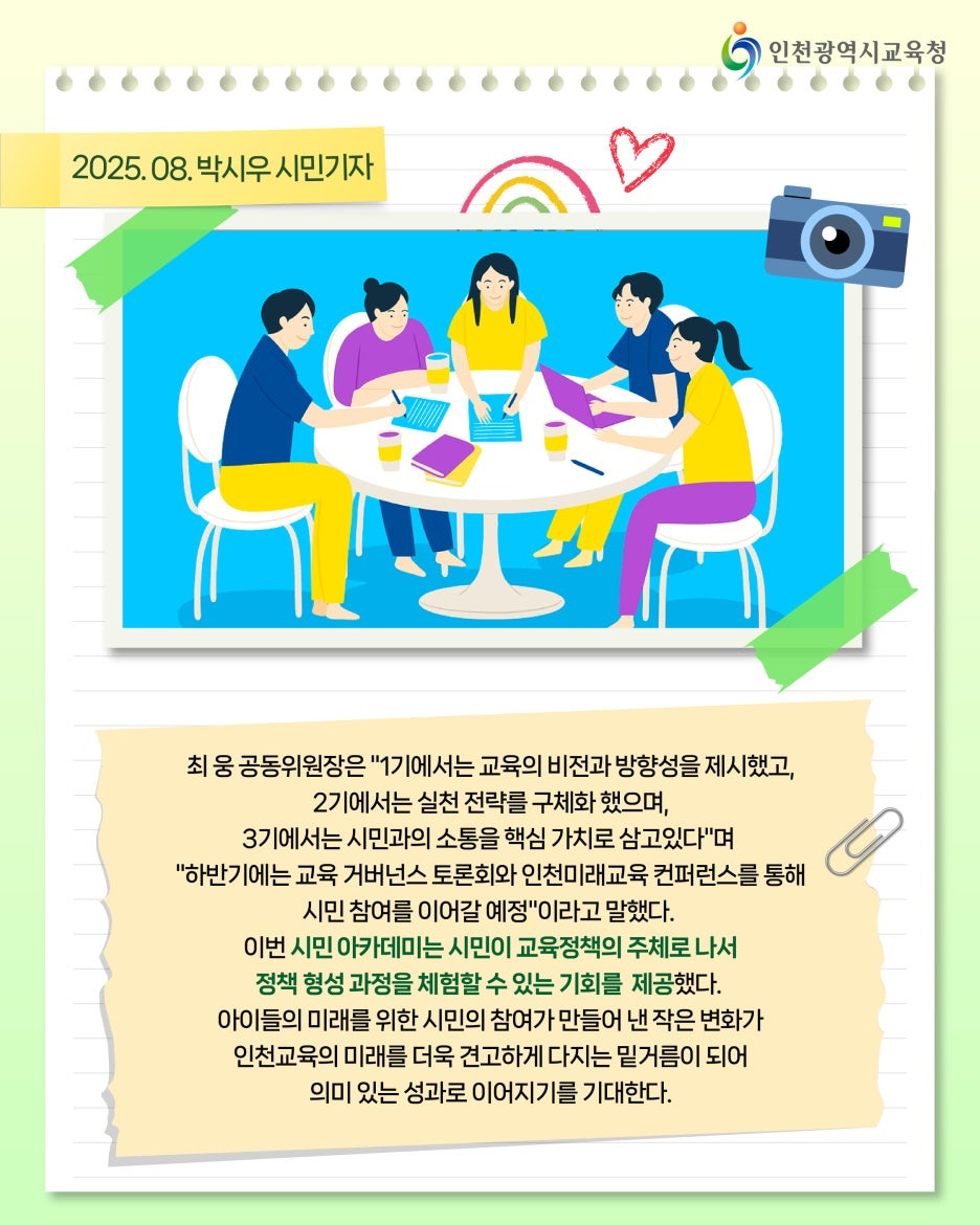 아이들의 미래를 위한 시민의 참여가 만들어 낸 작은 변화가 인천교육의 미래를 더욱 견고하게 다지는 밑거름이 되어
