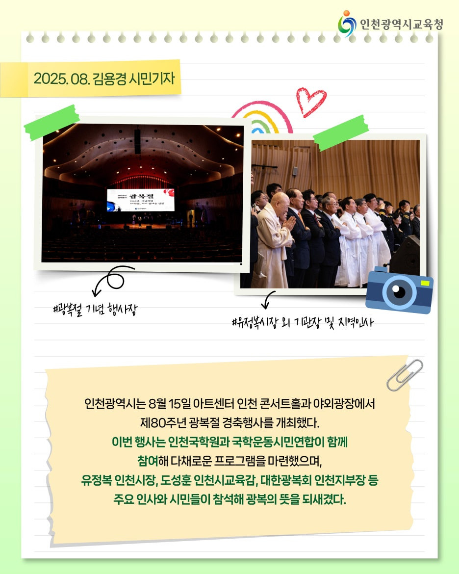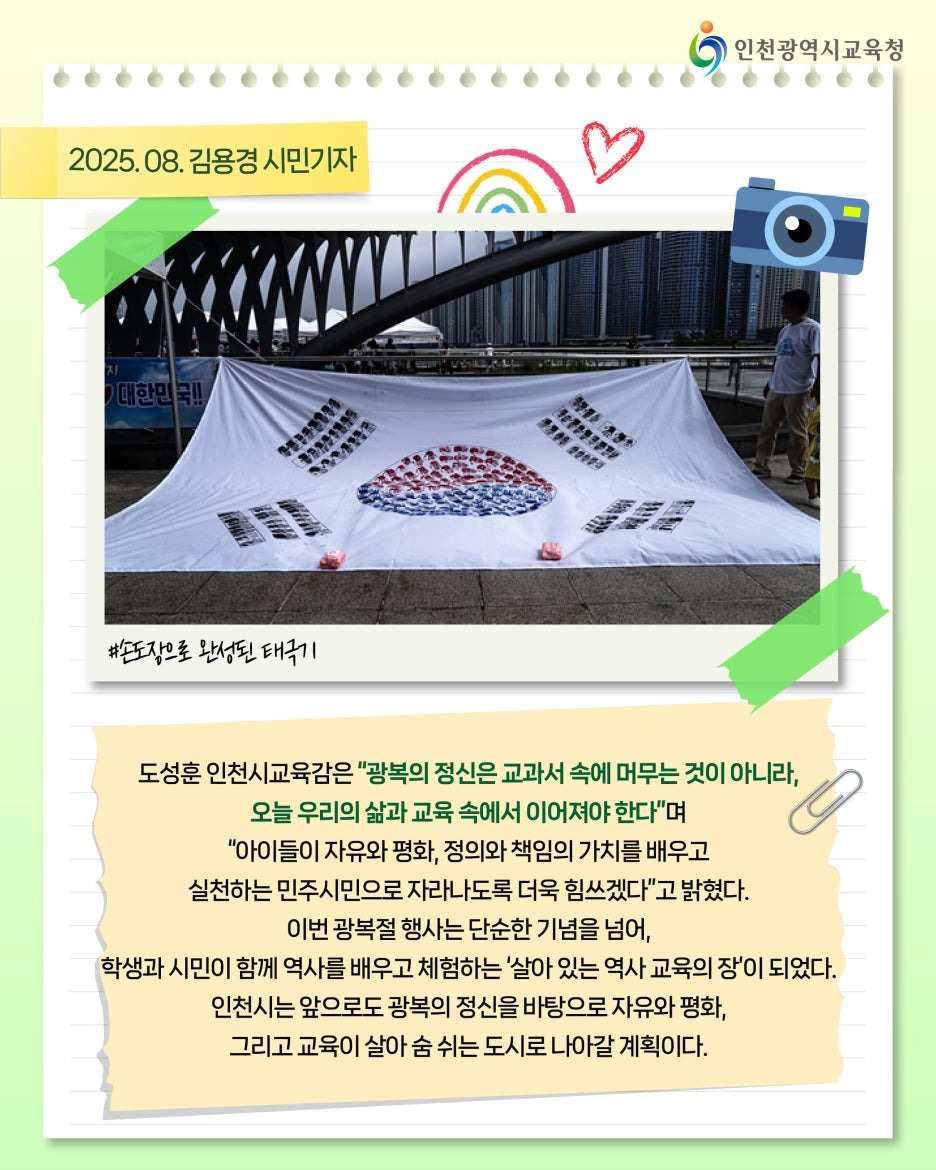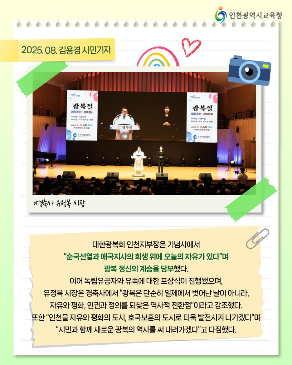 도성훈 인천시교육감은 “광복의 정신은 교과서 속에 머무는 것이 아니라, 오늘 우리의 삶과 교육 속에서 이어져야 한다”며