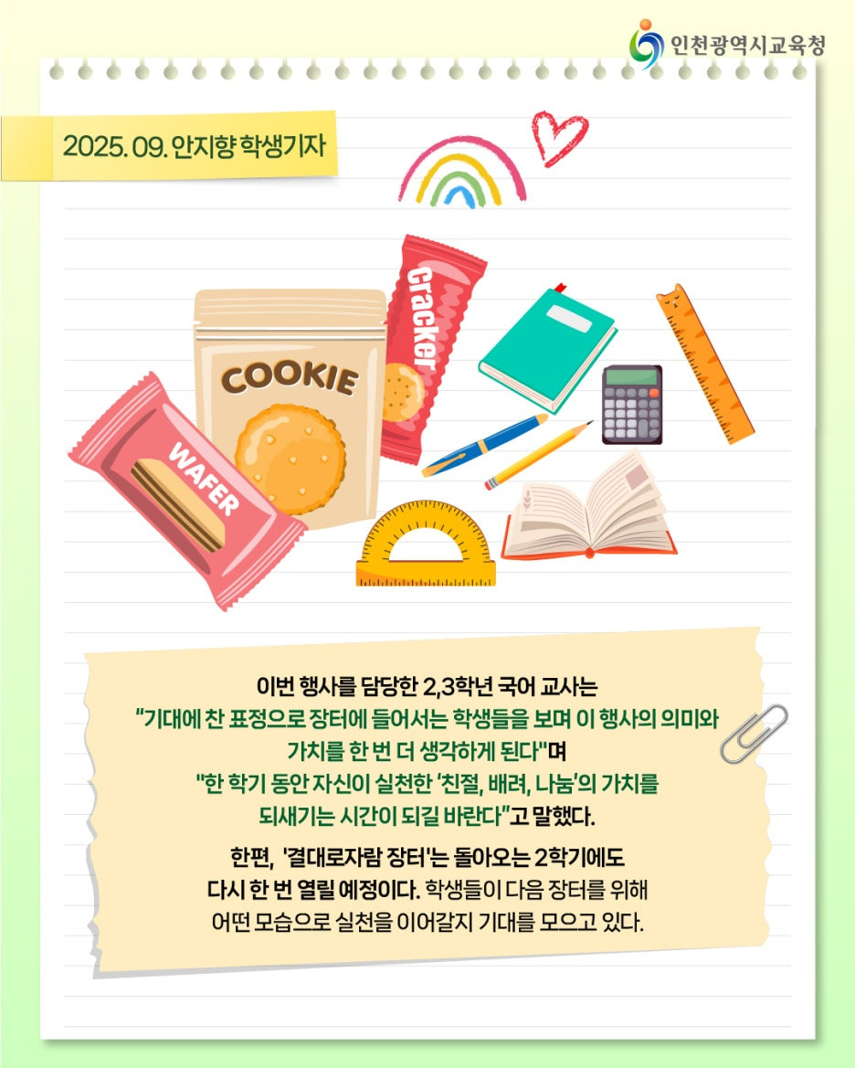 | [학생 시민 기자단] “GO! 제로스플래시” - 제로 웨이스트를 실천하는 인천해송초 학부모회 (0) | 2025.10.01 |