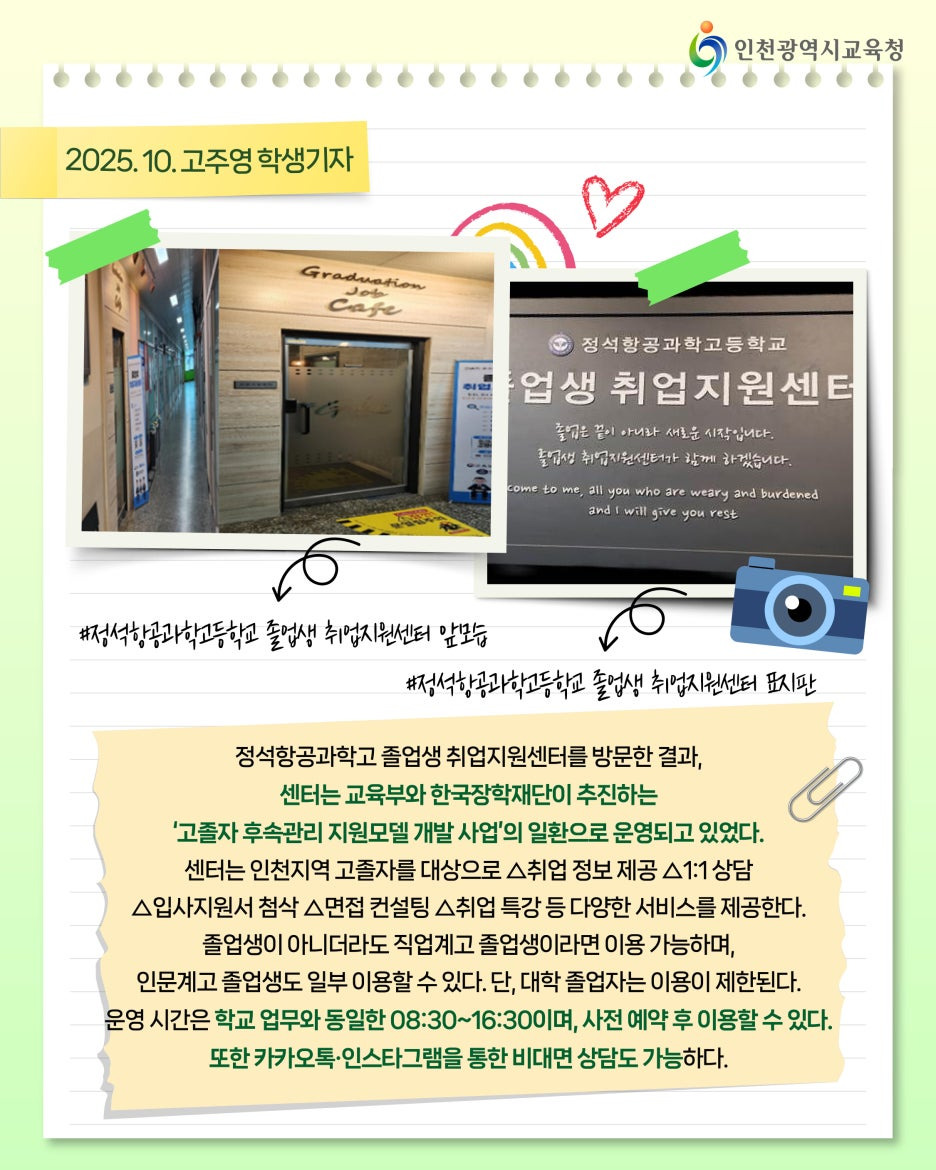 정석항공과학고 졸업생 취업지원센터를 방문한 결과,