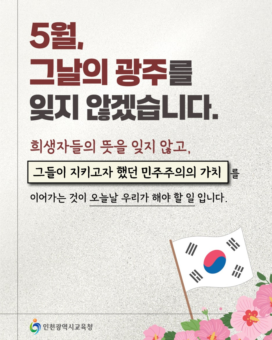 광주 민주화운동 기념일입니다.