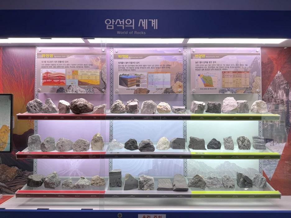 우리나라의 다양한 암석들과 화석이 전시되어 있는 공간이에요.